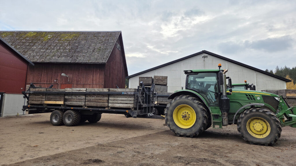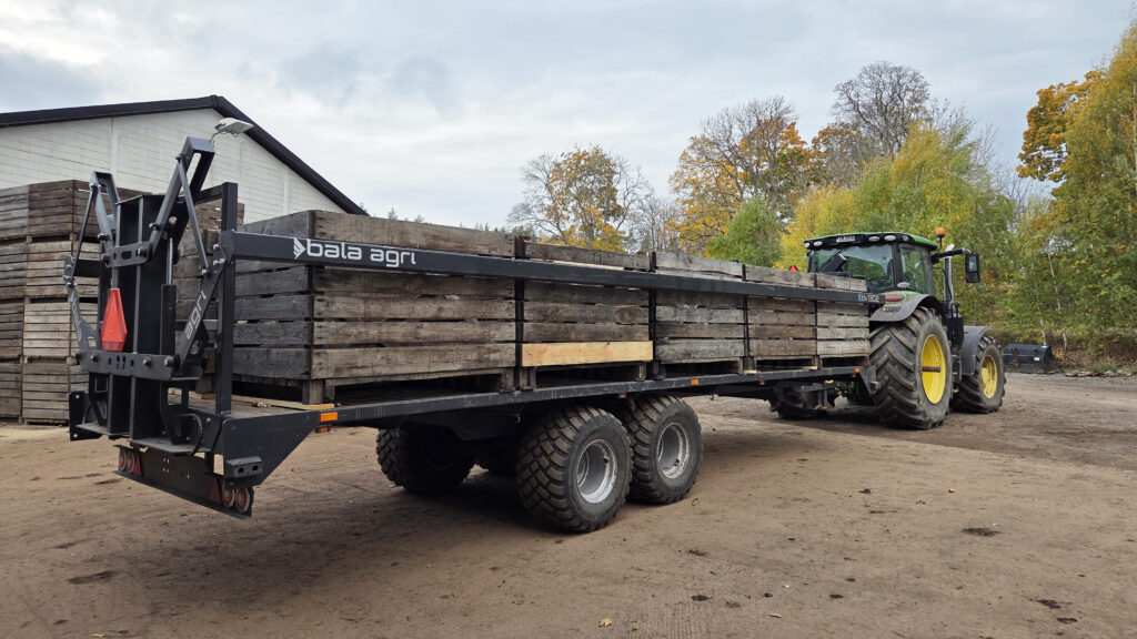 – De är lågbyggda, så det är enkelt att köra dubbla lådor vid skörd. Vi behövde mer lastyta och effektivitet, och det här har verkligen sparat tid, säger Fredrik.